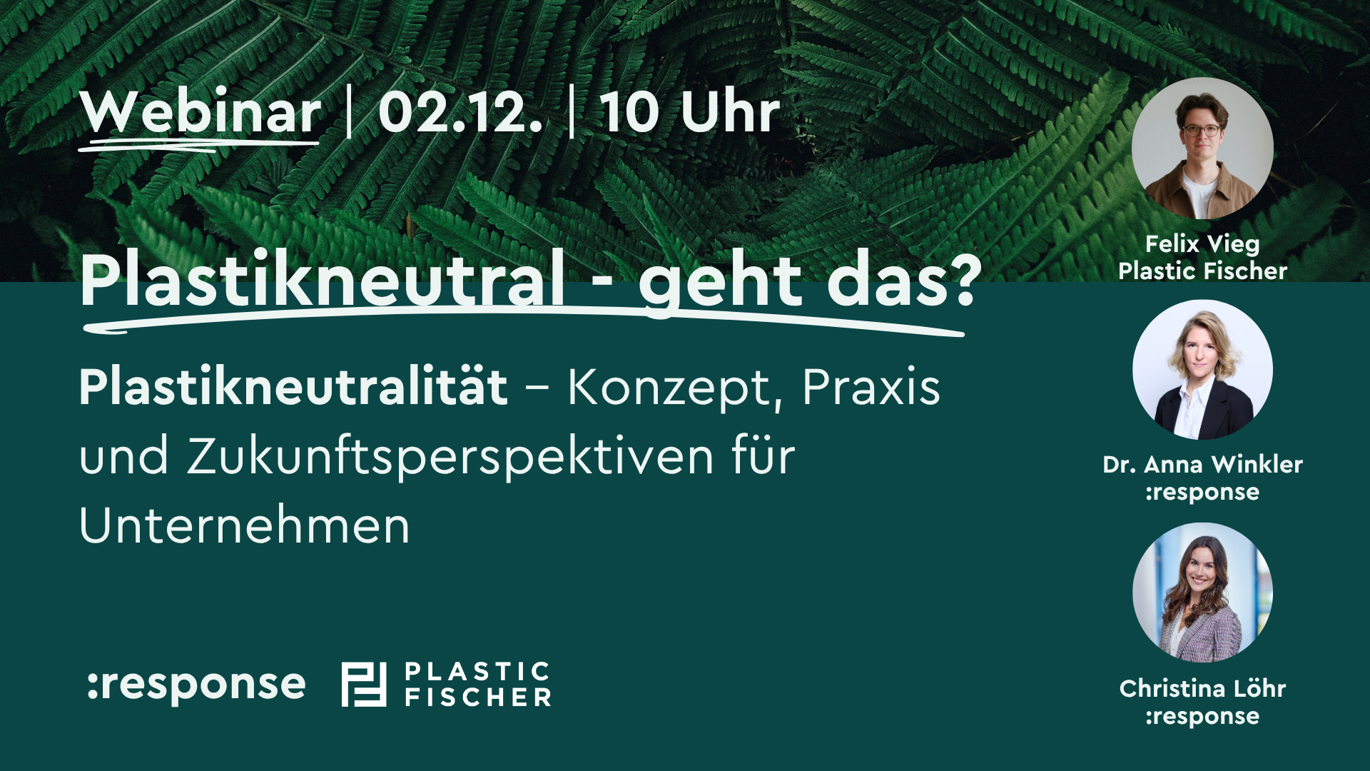 In diesem Webinar beleuchten wir gemeinsam mit Felix Vieg von Plastic Fischer, wie das Konzept der Plastikneutralität funktioniert, welche Chancen und Herausforderungen es birgt und wie sich Unternehmen strategisch, regulatorisch und kommunikativ dazu positionieren können.